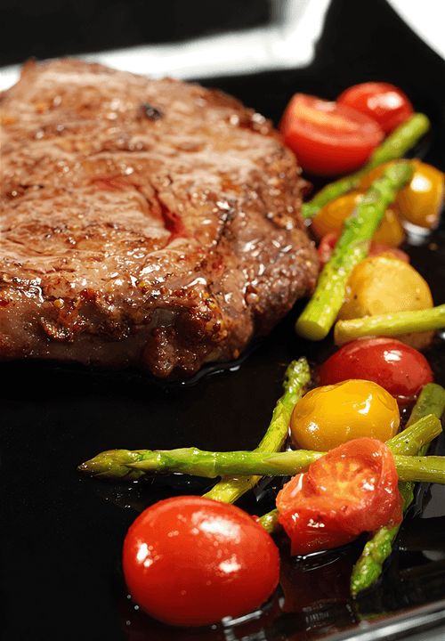 Beef steaks with roasted cherry tomatoes are the embodiment of American culinary tradition, combining the juiciness of meat with the rich aromas of fresh herbs. The dish's origins trace back to the cowboy era and steakhouses, where simplicity in preparation met deep flavor. Juicy steaks infused with spices are seared to a perfect crust and then brought to tenderness in the oven. Roasted cherry tomatoes add a bright tang and rich flavor to the dish, balancing the meat's texture. Enhanced with fresh thyme and basil, they become a harmonious side dish. This meal pairs perfectly with red wine and is an excellent choice for dinner with loved ones. Simple to prepare yet elegant in taste, it will delight gourmets and lovers of meat delicacies.