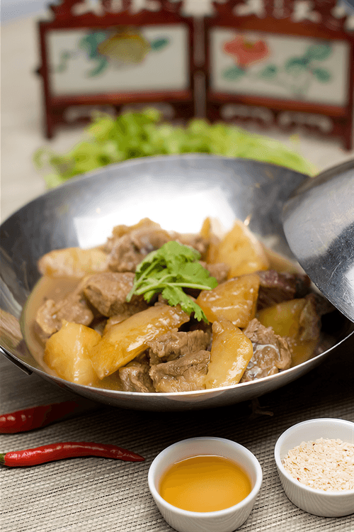 Beef in Madras curry with potatoes is a dish filled with warmth and depth of flavors. Madras curry, originating from southern India, adds brightness, spiciness, and rich seasoning to the meat, creating a true gastronomic celebration. Slow-cooking the beef in aromatic broth makes it tender and juicy, while the addition of young potatoes gives the dish richness and texture balance. Light notes of garlic, ginger, and caramelized onions enrich the flavor, turning each bite into a harmony of spices and softness. This dish pairs perfectly with jasmine rice that highlights its spicy soul. Ideal for cozy dinners or an impressive treat for guests—it reveals the culture and richness of Indian cuisine in an author's rendition.