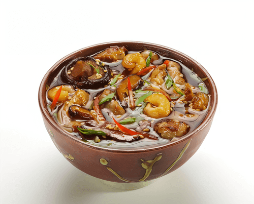 This recipe is a true embodiment of Japanese gastronomic philosophy, harmoniously blending a variety of flavors and textures. Tender chicken fillet combined with delicate shrimp is complemented by silky tofu and aromatic shiitake mushrooms. All ingredients are infused with rich dashi broth, soft notes of sake, soy sauce, and the sweetness of mirin, creating an umami-rich dish. This dish is an ideal option for a cozy dinner that evokes the atmosphere of a traditional Japanese restaurant. Ramen noodles add heartiness while fresh vegetables and herbs provide crunch and lightness. Such a combination makes this recipe not only delicious but also balanced, healthy, and visually appealing. Enjoy the tender and layered flavor that reveals the beauty of Japanese cuisine.