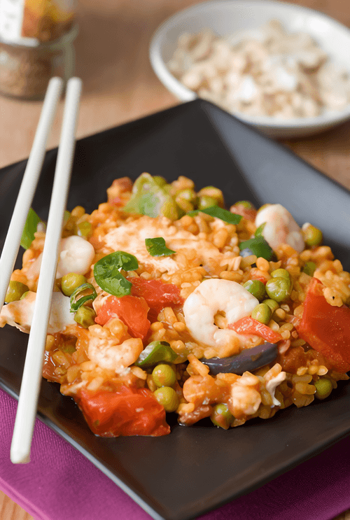 Fried chicken and shrimp with sweet corn, mushrooms, and rice is a harmonious blend of textures and flavors inspired by Japanese cuisine. Tender chicken fillet marinated in aromatic yakitori sauce and juicy shrimp create a rich base complemented by the sweetness of corn and the freshness of green peas. Eggs add creaminess to the dish, while a light soy sauce enriches it with subtle umami notes. Everything is cooked in a hot wok, making the flavor particularly intense. This dish is a true delight that can elevate both an everyday dinner and a special evening.