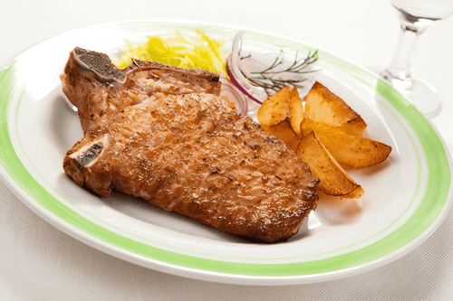 Cut the meat into 4 steaks and generously rub with the remaining salt and pepper. Heat the pan with the remaining olive oil over high heat, but not until smoking. Place the meat and sear well for 3-4 minutes on each side. Remove from heat.