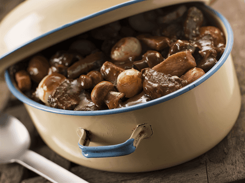 Beef Bourguignon is a true embodiment of French culinary elegance. Originating from Burgundy, a region famous for its vineyards, this dish transforms simple ingredients into a work of art. Tender pieces of beef slowly simmered in red wine with bacon, onions, and mushrooms create a rich, velvety flavor with deep wine and spice notes. Sweet onions and earthy mushrooms add depth to the taste, while a light dusting of flour gives the dish body. Beef Bourguignon pairs perfectly with mashed potatoes or fresh crusty baguette for dipping into the aromatic sauce. This dish not only nourishes the body but also wraps you in comfort, evoking thoughts of quiet evenings in a small French bistro. A true gastronomic classic!