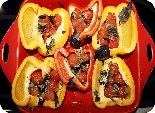Baked peppers with cherry tomatoes, basil, and marjoram is a fragrant and vibrant dish reminiscent of summer Italy. Its roots trace back to Mediterranean cuisine, where fresh vegetables and herbs form the foundation of gastronomic culture. Baked peppers soaked in the juice of sweet tomatoes and the aroma of basil acquire a tender texture and rich flavor. Marjoram adds a light spiciness that highlights the depth of aroma. The dish can be served as a standalone treat, a light side for meat or fish, or as an accompaniment to fresh baguette with olive oil. It not only delights the eye with its bright colors but also offers a sense of freshness and harmony. An ideal option for those who appreciate simplicity combined with rich flavor!