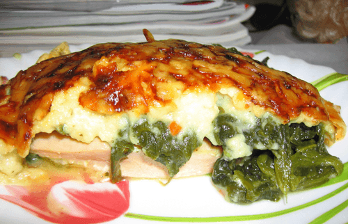 Florentine chicken is an elegant dish of Italian cuisine that embodies the spirit of Tuscany. It combines tender chicken fillet grilled to golden stripes and aromatic spinach sautéed with onions and garlic. The finishing touch is a delicate sauce made from milk, flour, mustard, and cheese that adds softness and rich flavor to the dish. The light spiciness of the mustard harmonizes with the creamy texture of the sauce, while grated cheese adds depth of flavor. The dish has a delightful balance between the juiciness of the chicken and the velvety structure of spinach with sauce. It is perfect for a festive dinner or romantic evening, bringing a touch of Italian gastronomic sophistication to your table.