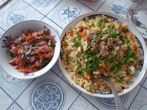 Achik-chuchuk is a traditional Uzbek salad served with pilaf, refreshing and complementing its rich flavor. Its roots go back to ancient Eastern traditions where fresh vegetables were an important part of the meal. This salad is a true hymn to simplicity and natural taste. Juicy tomato adds a sweet-sour note while spicy red pepper gives it zest. White onion fills the dish with a light bitterness and cilantro adds a fresh herbal touch. This mixture creates the perfect balance of vibrant flavors that highlight the aromatic pilaf. The ease of preparation makes it an indispensable element of Eastern feasts. Enjoy this salad with hot, fluffy pilaf to experience all the magic of Uzbek cuisine!