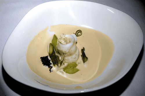 St. Pierre fillet with asparagus and black caviar, under Champagne sauce