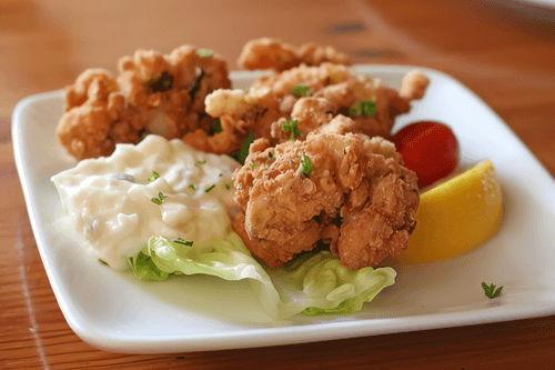 Crispy chicken pieces in a golden crust