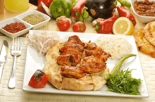 Chicken kebabs with sour cream and mustard sauce
