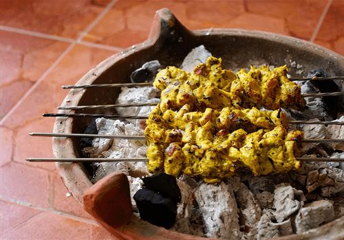 Chicken kebabs in yoghurt marinade with curry
