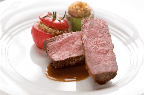 Baked fillet of Alpine lamb with tomatoes and young zucchini stuffed with eggplants