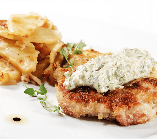 Chicken cutlets with creamy herb sauce are a tender and aromatic dish of Chinese cuisine that combines the softness of chicken mince with a rich creamy sauce enriched with herbs. The cutlets become airy due to the addition of milk and bread, while pre-frying gives them a golden crust. The sauce, made from white wine, cream, and fresh herbs, complements the flavor by creating an exquisite balance between creamy tenderness and spicy herbal notes. This dish is perfect for both festive dinners and cozy home lunches. It can be served with a side of rice or fresh vegetables, enjoying the rich taste and creamy texture. Spicy herbs give the cutlets a special character, making them a truly unique culinary masterpiece.
