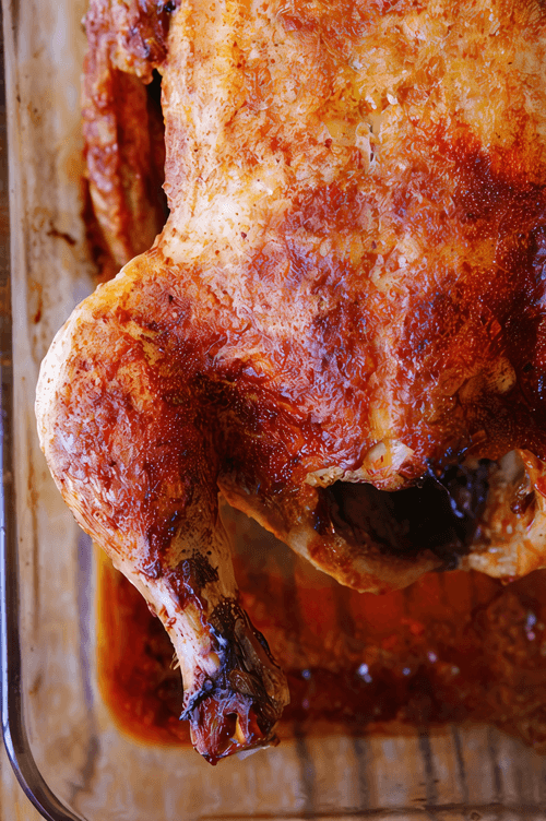 Bake in the oven for about an hour, basting with the released juices.