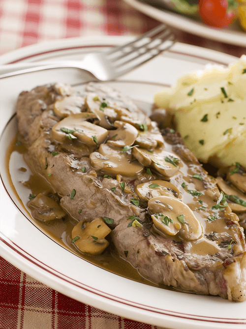 Beef steak with creamy mushroom sauce