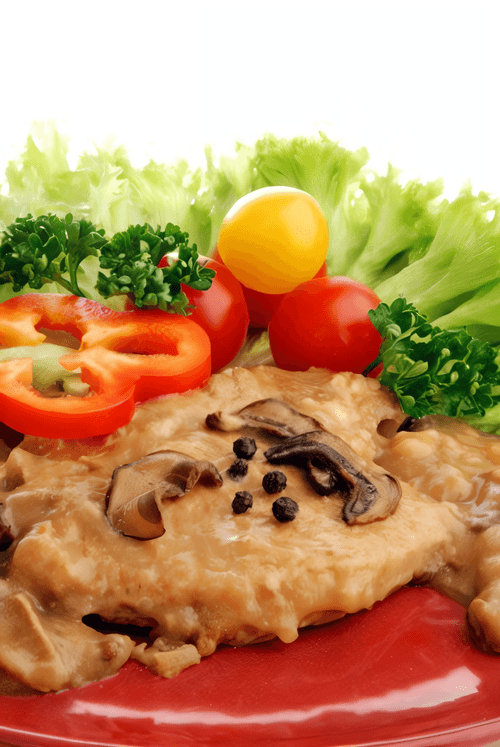 Pork with mushroom sauce, sour cream and dill