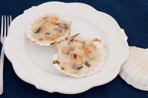 English scallops in shells in white wine sauce