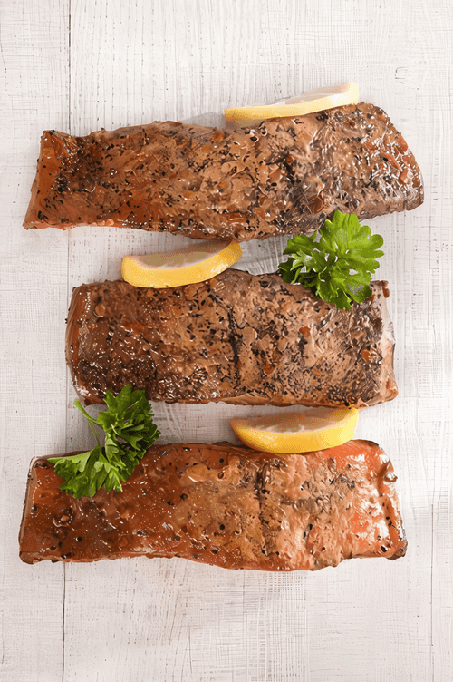 Miso and sake marinated salmon is a refined dish of Japanese cuisine, combining the rich umami flavor of miso paste with subtle hints of mirin sweetness and deep notes of sake. This cooking method allows the fish to absorb all the marinade's aromas, becoming incredibly tender and juicy. After baking and lightly browning on the grill, the salmon develops an appetizing caramelized crust that pairs beautifully with its soft texture inside. The dish can be served with rice, fresh vegetables, or light pickled sides for a harmonious and balanced taste.