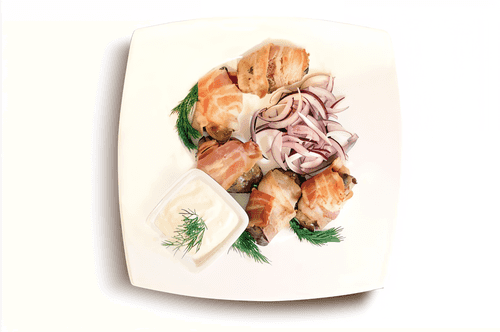 Chicken liver wrapped in bacon is an exquisite dish of Serbian cuisine that combines the rich flavor of liver with crispy, fried bacon. Historically, liver dishes were popular in Serbia due to the availability of ingredients and ease of preparation. Frying the liver before wrapping it in bacon makes it tender, while the bacon adds juiciness and richness to each piece. There is no need to salt the liver as the bacon provides the necessary flavor balance. This dish is perfect for cozy family dinners or festive gatherings where rich, meaty aromas are appreciated. It is served with light sides like vegetables or fresh bread to highlight the fullness of the flavor composition.