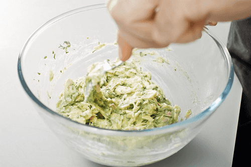 Add puree, chopped parsley, two tablespoons of flour, and one egg to the bowl with fish. Season with salt and pepper to taste and mix thoroughly until homogeneous. If the mixture is too thick, add a little milk in which the fish was cooked and mix to a paste-like consistency.