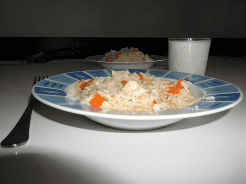 Cut the chicken into small pieces, add to the hot pan with carrots, and fry until the meat turns white on the outside. Add salt. Reduce the heat to medium.
