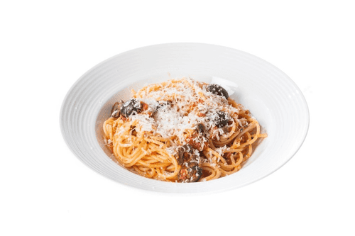 Spaghetti alla puttanesca can be roughly translated as "spaghetti with a twist." There are many versions of its origin: from wise whores who came up with the idea of serving pasta to attract customers, to a chef who accidentally put together a sauce from everything he had, as often happens. An option for when classic pasta with tomato sauce has become boring and you want to achieve a brighter taste. Do not skimp on capers, garlic, anchovies and olives - the sauce should be very rich to soak the pasta well.