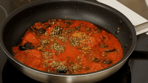 Add oregano and red pepper