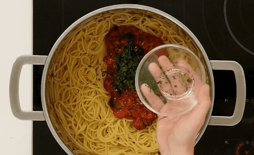 Add the sauce and chopped parsley. Keep on heat for about 3 minutes to let the spaghetti absorb the sauce.