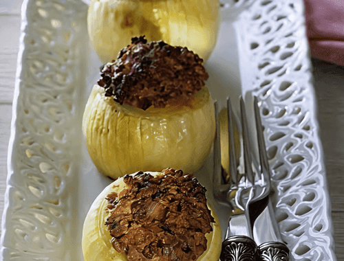 Onion stuffed with meat and herbs is a refined dish of European cuisine, rooted in ancient traditions of using onion as a natural container for stuffing. The combination of juicy minced meat, aromatic herbs, and the tender texture of baked onion creates a harmony of flavors. Small yet rich portions are perfect for a cozy family dinner or a festive feast. Baked onion acquires a sweet softness that complements the spicy meat filling. Herbs like thyme, parsley, and basil add freshness and sophistication to the stuffing. This dish can be served on its own or with a side of fresh vegetables or light mashed potatoes. The simplicity of preparation makes it accessible for any level of culinary skill, while the taste is unforgettable.