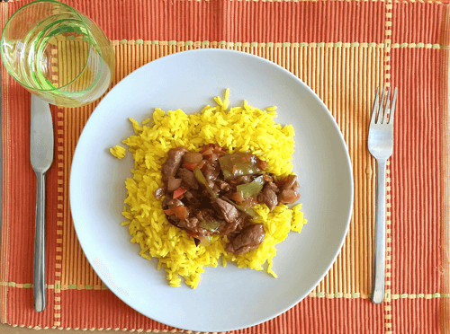 Sweet and sour pork with pineapple and rice
