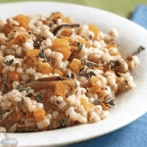 Pearl barley with pumpkin and mushrooms