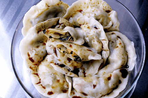Dumplings with royal oyster mushrooms and leeks