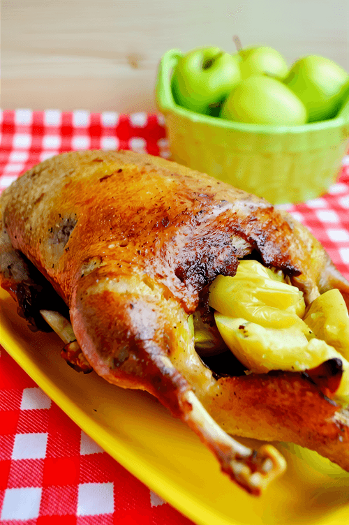 Duck with apples, baked in a sleeve