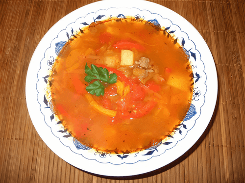Koloshvar-style goulash is a classic Hungarian dish filled with depth of flavor and regional traditions. Its roots trace back to when Hutsuls prepared meat stews, adapting recipes to local ingredients. Rich and hearty, this goulash combines tender beef, aromatic onions, sweet peppers, and paprika for a spicy warmth. Potatoes and cabbage make it filling and cozy, while spices like cumin and marjoram add characteristic notes of Hungarian cuisine. Served hot, it’s perfect for family dinners or friendly gatherings.