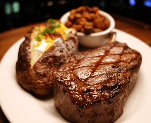 Ribeye steak is a true gastronomic luxury popular in European cuisine. Its history begins in the USA, where this type of steak became a symbol of quality meat. The main feature of ribeye is its rich marbling, which keeps the meat incredibly juicy and tender. Grilling on a hot skillet gives it an appetizing crust while maintaining internal softness. The flavor is rich, buttery, with deep meaty notes. A side of sautéed mushrooms complements the steak with earthy tones. Seasoned with sea salt and freshly ground pepper, it reveals its best gastronomic qualities. Such a steak is perfect for festive dinners or pleasant evenings with a glass of red wine.