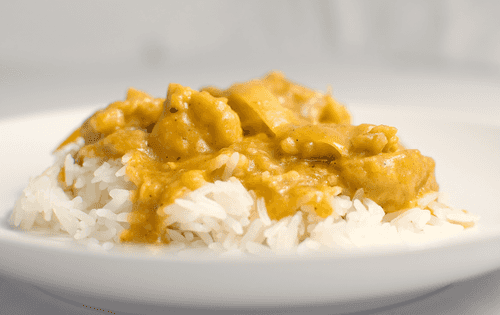 Dissolve a spoon of flour in a glass of coconut milk and add it to the chicken, stirring vigorously. Once the sauce thickens, remove the dish from the heat.