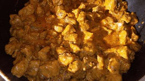 Chop the onion finely and fry it. Add the pork goulash, then a pinch of salt, and fry everything for about 10 minutes.
