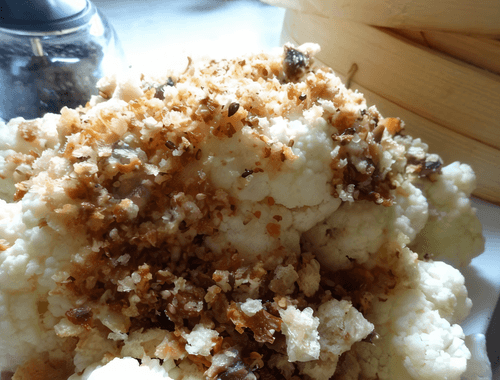 Steamed cauliflower with croutons