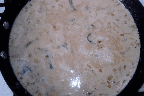 Add sour cream, mushroom broth, pepper, salt, and sprinkle with spices (I use a mixture of Provencal herbs) to this mixture. Mix everything, cover with a lid, and bring to a boil.