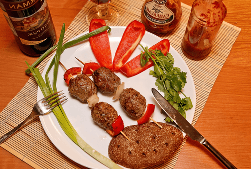 Lula kebab made from beef with sweet pepper is a vibrant embodiment of traditional Azerbaijani cuisine, rich in aromas and intense flavors. It is based on juicy minced beef mixed with cilantro, garlic, and green onions that give the dish a unique freshness. The beaten mince becomes tender, and baking in the oven preserves its juiciness. The addition of sweet pepper enriches the taste with a sweet note and complements the spiciness of black pepper. Lula kebab is served with fragrant herbs, vegetables, and sweet-sour sauces that create a harmony of flavors. This dish is perfect for festive gatherings as well as cozy family dinners, reminding one of Eastern hospitality and love for rich, balanced tastes.