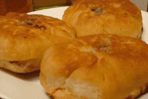 Divide the yeast dough into pieces the size of a small éclair. Roll it out. Place minced meat with finely chopped onion and egg, salt, and pepper in the center, closing it so that the top of the belyash remains open.