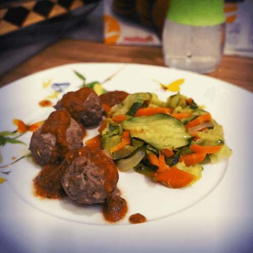 Zucchini with meatballs and aromatic sauce