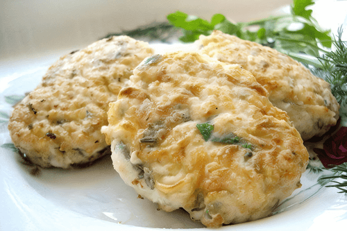 Chop the chicken fillet into small cubes, add grated carrot, finely chopped onion, and chopped greens. Add salt, 2 eggs, and a bit of French herbs (optional).