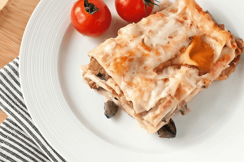 Mushroom lasagna is a refined dish of Italian cuisine that combines the creaminess of béchamel sauce, the rich flavor of forest mushrooms, and the aroma of tomatoes. Historically, lasagna originated in the Emilia-Romagna region, and its variations with mushrooms are especially popular in northern Italy where forest mushrooms play an important role in gastronomy. In this recipe, champignons and chanterelles create a harmonious texture: the former adds juiciness while the latter provides a distinct forest aroma. Tomatoes, basil, and oregano complement the flavor with a light acidity, while the final layer of melted cheese gives the dish an appetizing golden crust. Mushroom lasagna is perfect for a cozy family dinner or a festive lunch, offering a taste of rich Italian comfort.