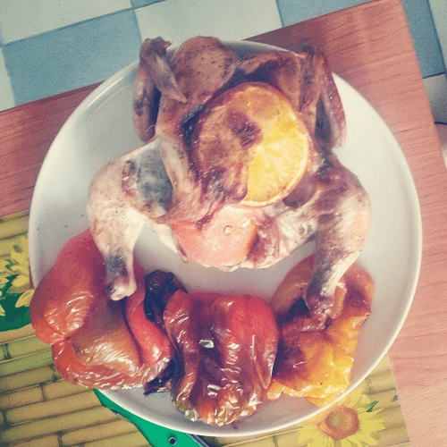 Orange chicken with peppers is a bright, aromatic, and juicy dish that combines the freshness of citrus and the spiciness of Mediterranean herbs. Its roots trace back to European cuisine, where fruits are often used to impart tenderness and depth of flavor to meat. Orange juice makes the meat especially tender, while paprika and Provençal herbs add a refined aroma. Bell peppers roasted alongside the chicken highlight the sweet notes of the dish and create a harmonious flavor balance. Baked in the oven until golden brown, this chicken becomes the centerpiece of the table, perfect for cozy family dinners or festive meals. It is served with light side dishes to fully reveal the rich flavor infused with citrus and spices.