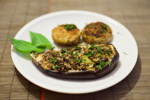 Stuffed eggplants with baked egg