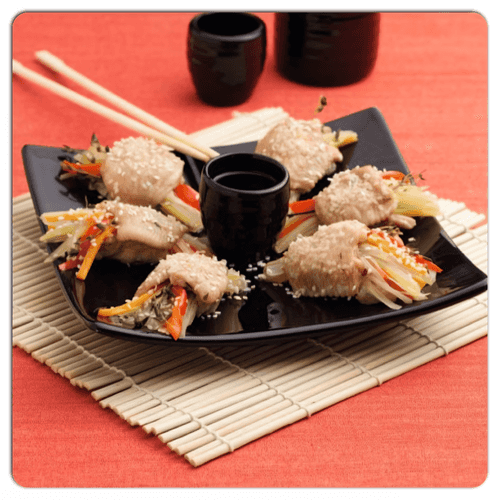 Chicken wings stuffed with vegetables are a gourmet dish of Chinese cuisine, combining the tenderness of meat with the crispy freshness of vegetables. The recipe's origins lie in traditional stuffing methods widely used in Chinese gastronomy. Juicy chicken infused with the aroma of soy sauce and spices is enriched with bell peppers, carrots, and leeks, creating a harmonious blend of flavors. Baking gives the wings an appetizing golden crust, while a sprinkle of sesame adds a nutty touch. This dish is perfect for family dinners or festive gatherings, impressing with its unusual presentation and rich taste.
