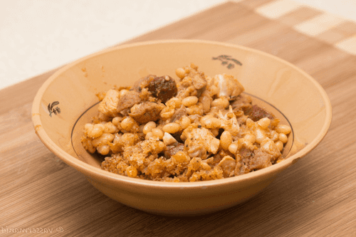 Rinse the beans in running water, drain them and place them in a pan. Simmer for another hour. If necessary, add water. The cassoulet should be slightly liquid.