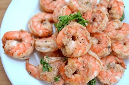Put cleaned shrimp, salt, and pepper in a pot and boil until they turn pink, for 2 to 3 minutes. Remove the shrimp from the pot and set aside.