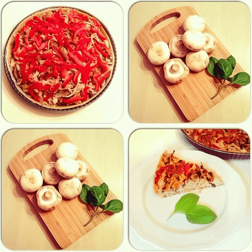 This open pie with chicken, mushrooms, and sweet pepper is a true embodiment of European culinary art. Its roots go back to the traditions of rustic cuisine, where simple yet rich ingredients create a harmony of flavors. The crispy dough serves as the perfect base for tender chicken, aromatic mushrooms, and juicy sweet pepper that adds a light sweetness and freshness. The filling of cream, eggs, and parmesan gives the pie an exquisite, rich taste. This pie is ideal for both a cozy family dinner and a festive table, impressing with its aroma and appetizing appearance. Served warm, its combination of textures and flavors makes each forkful a true delight.