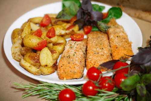 Breaded rainbow trout is a harmony of flavors, the elegance of European cuisine and the art of cooking. The tender fillet of rainbow trout is enriched with aromas of fresh herbs, garlic and lemon zest, creating a delightful crispy crust from breadcrumbs. Baked potatoes infused with spices and olive oil serve as the perfect complement, while subtle notes of white wine add an exquisite touch. This recipe is ideal for festive dinners and cozy family gatherings. Simple to prepare yet elegant in presentation, it captivates with its rich flavor and noble texture. Garnished with fresh basil and sweet cherry tomatoes, this dish not only pleases the eye but also delights the taste buds, offering true gastronomic pleasure.