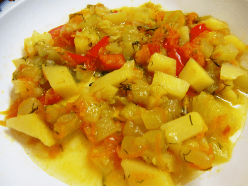 Summer vegetable stew with potatoes is a classic Russian dish infused with the spirit of rustic cuisine and the simple joys of summer harvest. It features fresh, aromatic vegetables: potatoes, young zucchini, eggplants, sweet peppers, and carrots that combine with tomato paste to create a rich, slightly tangy sauce. A light garlic hint adds zest to the dish while cooking in a multicooker helps retain the juiciness and natural flavor of each ingredient. This stew is a true anthem to summer, perfect for a light dinner or as a side to meat dishes. It's easy to prepare, nutritious and warming, evoking nostalgia for grandma's kitchen. Serve it with herbs and fresh bread to enhance the taste with pleasant textural contrasts.